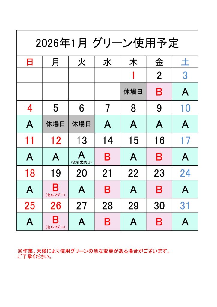 1月グリーン使用予定