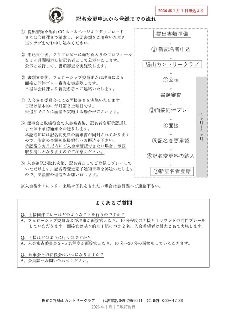 それに伴い、2026年1月1日受付分より法人会員様の同一法人内記名変更時に入会審査が必要となります。